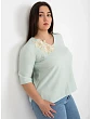 Rozmery blúzky vo veľkosti 46 merané na plocho: šírka pod pazuchami - 57 cm, celková dĺžka - 63 cm.