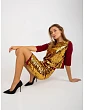 Modelka má na sebe veľkosť 36. Rozmery modelu: výška 175,5 cm, hrudník 87 cm, pás 61 cm, boky 90 cm.