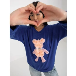 Tmavomodrý dámsky klasický sveter s 3D aplikáciou.