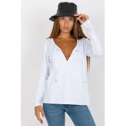 Blúzka s dlhými rukávmi a hlbokým výstrihom. Zaväzovanie vo výstrihu.
