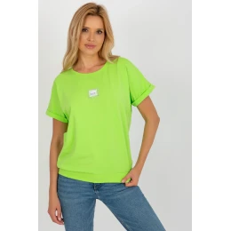 Dámska blúzka s krátkymi rukávmi a okrúhlym výstrihom. Blúzka je vyrobená z pevného materiálu s ozdobnou nášivkou na prednej strane.