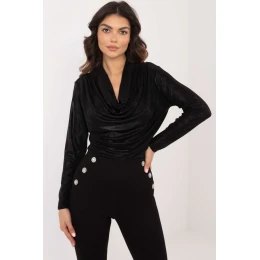 Elegantná blúzka so sofistikovaným charakterom, ideálna na slávnostné udalosti a večierky. Je vyrobená z lesklého materiálu z polyesteru a viskózy, ktorý priťahuje pozornosť a dodáva oblečeniu lesk. Blúzka má pestrú štruktúru materiálu, čo jej dodáva jedinečný vzhľad. Má dlhé rukávy a voľný výstrih, ktorý krásne sedí na postave a dodáva jej ľahkosť a eleganciu. Ozdobné záhyby na materiáli dodávajú ďalší prvok elegancie a zvýrazňujú jej originálny dizajn. Vďaka štandardnej dĺžke je blúzka skvelým doplnkom k rôznym outfitom.