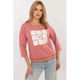 Blúzka každodenného voľného strihu, ktorá spája pohodlie a štýl v ideálnych proporciách. Je vyrobená z kvalitnej bavlny s prímesou elastanu, poskytuje pohodlie pri nosení a jemnú elasticitu, čo umožňuje voľnosť pohybu. Blúzka štandardnej dĺžky s 3/4 rukávmi je skvelou voľbou pre každodenné outfity. Okrúhly výstrih zdôrazňuje univerzálny charakter, ktorý sa hodí k rôznym typom postavy. Prednú stranu zdobí efektná potlač obohatená flitrami, ktorá dodáva blúzke jemný lesk a dáva jej vyniknúť medzi klasickými modelmi. Konštrukcia bez gombíkov zaručuje pohodlie a jednoduchosť používania. Ideálna voľba pre ženy, ktoré ocenia praktické a zároveň štýlové každodenné nosenie.