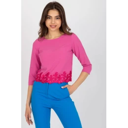 Elegantná dámska blúzka s hladkou štruktúrou, s jemnou ozdobnou úpravou v prednej časti, ktorá celku dodáva triedu a eleganciu. Model štandardnej dĺžky s okrúhlym výstrihom a 3/4 rukávmi je ideálnou voľbou na spoločenské udalosti alebo elegantný kancelársky styling. Blúzka je vyrobená z vysokokvalitnej zmesi bavlny, polyesteru a elastanu a spája v sebe pohodlie, odolnosť a jemnú elasticitu, čím poskytuje celodennú nositeľnosť. Minimalistický tvar a starostlivé spracovanie robia z blúzky vizuálne vkusný a nadčasový kúsok.