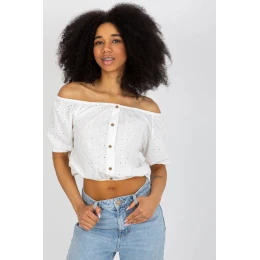 Blúzka na každý deň v boho štýle, ideálna na letné dni a voľné, ženské outfity. Vyrobená z priedušnej prírodnej bavlny, ktorá poskytuje pohodlie počas celého dňa. Model s krátkou dĺžkou a zmyselným výstrihom v španielskom štýle, ktorý krásne zvýrazňuje ramená a dodáva ľahkosť celej postave. Blúzka má krátke rukávy a očarí dominantnou, ažúrovou výšivkou, ktorá zdôrazňuje boho charakter projektu. Ďalšou ozdobou sú ozdobné gombíky na prednej strane, ktoré celku dodávajú jemný a štýlový akcent. Ideálny návrh na každodenné výlety, prechádzky alebo letné stretnutia.