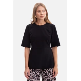 Blůza ušitá z hladkého úpletu o gramáži 260 g s podšívkou v smyčce, kombinuje pohodlí nošení s elegantním vzhledem. Model bez kapes a podšívky, zapínání vzadu na skrytý zip, co zajišťuje pohodlí a estetické dokončení. Klasický kulatý výstřih pod krkem dává blůze univerzální charakter, a rukávy po loket v přímém střihu ji dělají ideální na různé příležitosti. Jestěrková sukně jemně rozšířená ke dnu přidává ženské kouzlo, zdůrazňuje pas a tvaruje siluetu. Střih lehce tvarovaný, s přiléhavým vrchním dílem a jemně rozklošeným spodem, dělá z blůzy krásný kousek jak do elegantních, tak do každodenních stylizací. Délka po boky ji činí pohodlnou a snadno kombinovatelnou s různými kousky z garderoby. Navržena a ušita v Polsku z úpletu vyrobeného v Lodži, záruka kvality a péče o každý detail.