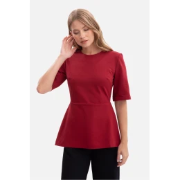 Blůzka vyrobená z hladkého úpletu s gramáží 260 g s podšívkou v smyčce, kombinující pohodlí nošení s elegantním vzhledem. Model bez kapes a podšívky, zapínání vzadu na skrytý zip, co zajišťuje pohodlí a estetické provedení. Klasický kulatý výstřih nad krkem dává blůzce univerzální charakter, a rukávy dlouhé po loket v přímém střihu ji činí ideální na různé příležitosti. Jemně rozšiřující se baskinka dolů přidává ženský šarm, zdůrazňuje pas a tvaruje postavu. Střih lehce talírovaný, s přiléhavým vrškem a jemně rozkvetlým spodem, dělá z blůzky krásný kousek jak do elegantních, tak do každodenních stylizací. Délka po boky ji činí pohodlnou a snadno kombinovatelnou s různými kousky šatníku. Navržena a ušita v Polsku z úpletu vyrobeného v Lodži, záruka kvality a pečlivosti o každý detail.