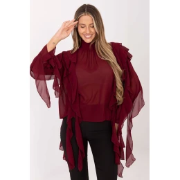 Elegantní dámská halenka je ideální volbou na každý den, na slavnostní příležitosti a na večírek, kdy chcete zdůraznit svůj styl jemnou, ale efektní formou. Její hladký vzor dodává celku eleganci a umožňuje snadné sladění jak s elegantními kalhotami, tak s sukní. Model je vyroben z příjemné směsi viskózy a polyesteru, díky čemuž je halenka měkká, lehce pružná a krásně padne na postavu. Standardní délka a dlouhý rukáv dodávají halence elegantní a univerzální vzhled. Golfový límec zdůrazňuje krk a přidává trochu elegantní tajemnosti, a knoflíkové zapínání na krku usnadňuje oblékání a představuje jemný dekorativní prvek. Halenka také okouzluje výjimečnými detaily, ozdobnými volány na zádech, přední části a rukávech, které jí dodávají lehkost, romantický charakter a módní eleganci. Je to skvělá volba pro ženy, které rády spojují jemnou klasiku s efektními, ženskými detaily.