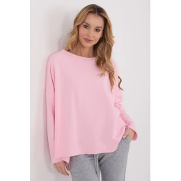 Ležérna blúzka s voľným oversize strihom, ktorá spája pohodlie s moderným štýlom. Je vyrobená z mäkkej zmesi bavlny a polyesteru, ktorá poskytuje pohodlie pri nosení a odolnosť materiálu. Model s hladkým vzorom má klasický okrúhly výstrih a dlhé rukávy, vďaka čomu je univerzálnym prvkom každodenného šatníka. Vďaka štandardnej dĺžke je blúzka skvelým doplnkom k džínsom aj ležérnym nohaviciam. Absencia zapínania na gombíky zdôrazňuje jednoduchý, voľný charakter oversize strihu.