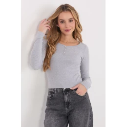 Vhodný dlouhý rukáv je skvělou základnou pro každodenní outfit v casual stylu. Krátký střih jemně zdůrazňuje siluetu a skvěle ladí s džínami, látkovými kalhotami nebo sukni s vysokým pasem. Tento model se hodí jak do každodenního nošení, tak do práce, spojuje pohodlí s univerzálním designem. Blůzka je vyrobena z vysoce kvalitní bavlny, která zajišťuje pohodlí, prodyšnost a jemnost na dotek. Hladký vzor jí dodává nadčasový charakter a usnadňuje vytváření různých outfitů. Model má dlouhé rukávy a klasický, kulatý výstřih zapínající se na tři knoflíky. Tento jemný detail přidává celkovému vzhledu ženského kouzla a umožňuje jemně regulovat hloubku výstřihu. Jedná se o praktický, stylový a všestranný kousek do každého šatníku.