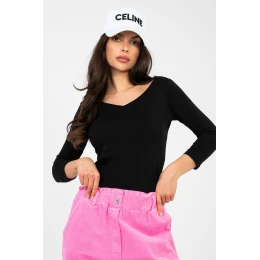 Elegantný a pohodlný top na každý deň s priliehavým strihom, ktorý krásne zvýrazňuje postavu a zároveň poskytuje maximálne pohodlie pri nosení. Je vyrobený z kvalitnej bavlny s prídavkom elastanu, je mäkký, príjemný na pokožku a jemne elastický, vďaka čomu sa dokonale prispôsobí telu. Model v štandardnej dĺžke s 3/4 rukávmi bude vhodný na teplejšie dni, ako aj ako súčasť vrstvených štylizácií. Top má vpredu a vzadu ženský výstrih, ktorý mu dodáva jemnú ľahkosť a moderný charakter. Hladký vzor podčiarkuje jeho univerzálnosť a umožňuje ho ľahko kombinovať s mnohými štylizáciami. Absencia zapínania zvyšuje pohodlie pri nosení a dodáva celkovému vzhľadu minimalistický nádych.