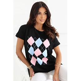 Košeľa s každodenným charakterom pre ženy je pohodlným a štýlovým návrhom na rôzne príležitosti. Je vyrobená z príjemnej zmesi bavlny a elastanu, ponúka pohodlný strih, dobrú priedušnosť a ľahkú elasticitu, vďaka ktorej sa prispôsobí postave. Model má geometrický vzor, ktorý mu dodáva moderný a výrazný charakter. Vďaka štandardnej dĺžke je košeľa skvelým doplnkom ku nohaviciam aj sukniam. Krátke rukávy a okrúhly výstrih jemne zvýrazňujú ženskú siluetu a dodávajú celému outfitu ľahkosť. Absencia zapínania zvyšuje komfort používania a uľahčuje obliekanie modelu. Univerzálna košeľa ideálna na každý deň, skvelá do práce aj na menej formálne udalosti.