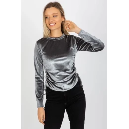 Krátka velúrová blúzka s dlhými rukávmi a okrúhlym výstrihom. Väzby na bokoch na nastavenie dĺžky.