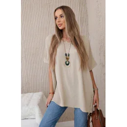 Blúzka nadrozmernej veľkosti s príveskom tmavo béžová