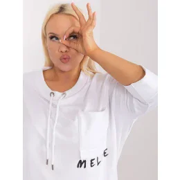 Wymiary bluzki w rozmiarze one size mierzone na płasko: szerokość pod pachami - 75 cm, długość całkowita (przód) - 67 cm, długość całkowita (tył) - 77 cm, długość rękawa - 43 cm.