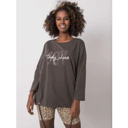 Tmavá khaki blúzka s kamienkovou aplikáciou .