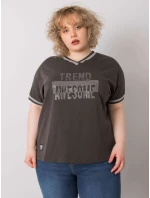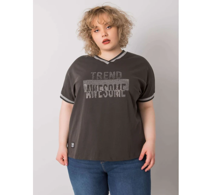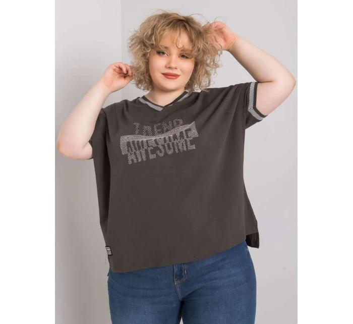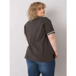 Tmavo khaki dámska plus size blúzka s aplikáciou .