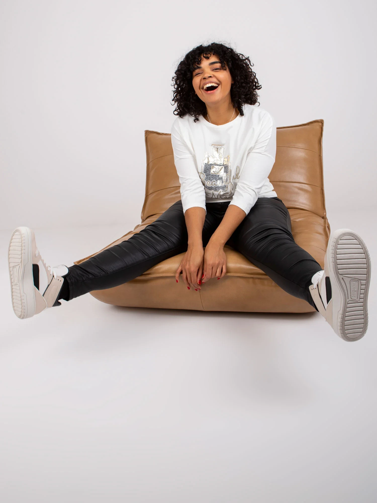 Modelka má na sebe jednu veľkosť. Rozmery modelky: výška 175 cm, poprsie 103 cm, pás 86 cm, boky 118 cm.