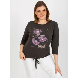 Khaki blúzka plus size s aplikáciou a potlačou.