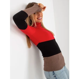 Červeno-hnedá základná blúzka s rebrovaným rolákom .
