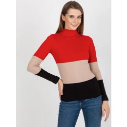 Základná blúzka s červeno-čiernym rebrovaným rolákom .