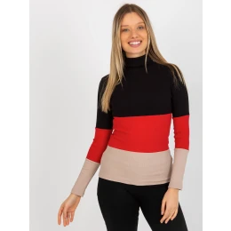 Čierno-červená bavlnená blúzka s rebrovaným rolákom .