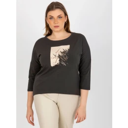 Khaki blúzka plus size s potlačou a 3/4 rukávmi.