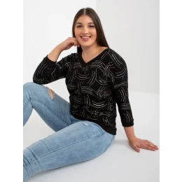 Čierna plus size blúzka s potlačou a 3/4 rukávmi.