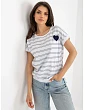 Biela a námornícka pruhovaná bavlnená blúzka .