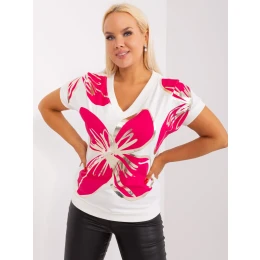 Blúzka v nadmernej veľkosti s potlačou v ecru-fuchsiovej farbe.