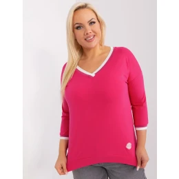Fuksiová hladká blúzka plus size s rebrovanými manžetami.