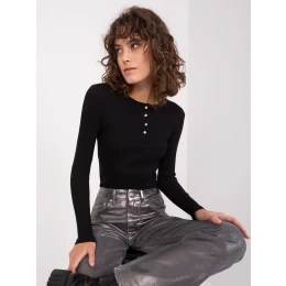 Čierna rebrovaná blúzka s dlhými rukávmi.