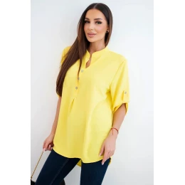 Objevte mimořádnou eleganci a pohodlí v prezentované halence s delšími zády, knoflíkovým výstřihem a ohrnutými rukávy, tato halenka nejen vypadá výjimečně stylově, ale poskytuje také bezkonkurenční funkčnost. Ciťte se sebevědomě a elegantně v halence, která podtrhne váš jedinečný styl. Díky delším zadním dílům vytvoříte jemné a módně nepravidelné proporce a knoflíkový výstřih vám umožní upravit si halenku podle vašich preferencí. Vyhrnuté rukávy dodávají halence lehkost a ležérní charakter, ideální pro různé příležitosti. Ať už se jedná o obchodní jednání nebo relaxační kávu s přáteli, naše halenka vám poskytne pohodlí a styl v jednom. Nenechte si ujít příležitost přidat do svého šatníku tuto jedinečnou halenku! Objevte eleganci, pohodlí a funkčnost v jednom a zdůrazněte svůj jedinečný styl ještě dnes. Velikost je univerzální a bude vhodná pro ženy, které nosí velikost S, M nebo L.