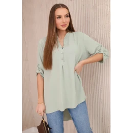 Blúzka s predĺženým zadným dielom svetlej mentolovej farby