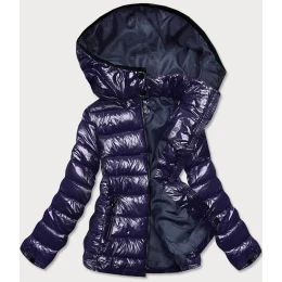 Tmavomodrá lesklá dámska zimná páperová bunda (b9583-3)
