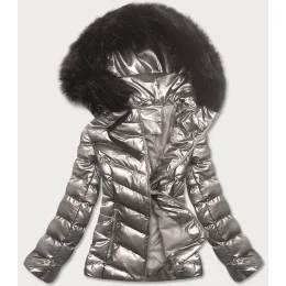 Strieborná lesklá dámska zimná bunda s kapucňou (5m773-401)