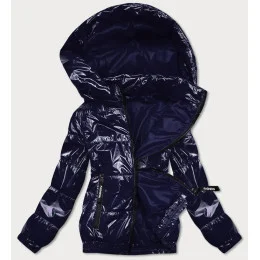 Tmavomodrá lesklá prešívaná bunda s kapucňou (BR9788-3)