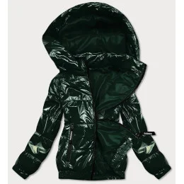 Lesklá zelená prešívaná bunda s kapucňou (BR9788-10)