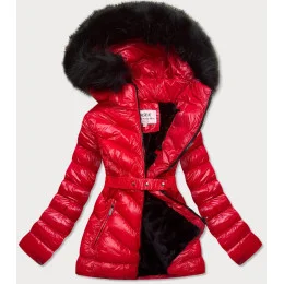 Červená lesklá zimná bunda s machovou kožušinovou podšívkou (w673)