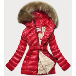 Červená lesklá zimná bunda s machovou kožušinovou podšívkou (w674)