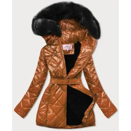 Lesklá zimná bunda v karamelovej farbe s mechovou kožušinovou podšívkou (w756)