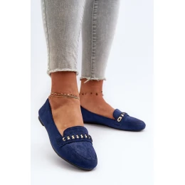 Błyszczące Mokasyny Damskie Z Łańcuchem Granatowe Aredilla
