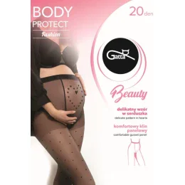 Těhotenské punčochové kalhoty Gatta Body Protect Beauty 20 denier jsou kombinací pohodlí a jemné ženskosti. Byly navrženy s ohledem na budoucí maminky, dokonale se přizpůsobí měnící se siluetě a poskytují oporu a pohodlí v oblasti břicha. Jemný srdíčkový vzor dodává šarm a dělá každodenní styling jedinečným. 20 denier elastická příze a panelový klín zaručují dokonalé přizpůsobení a pohodlí po celý den. Jedná se o ideální volbu pro těhotné ženy, které se chtějí cítit krásně a pohodlně.