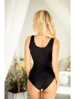 Sýto čierne, ale ľahko lesklé body ako návrh na luxusnejšie kreácie s malým pazúrikom sex-appealu v podobe odhalenej časti spodnej bielizne. Body je vaša spodná bielizeň, ale zvonku bude vyzerať ako luxusná košieľka.