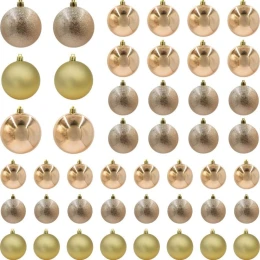 - w zestawie 46 bombek w trzech rozmiarach i o 3 różnych strukturach