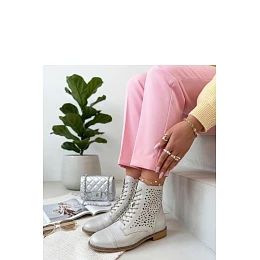 Elegantní krajkové kotníčkové boty jsou skvělým návrhem pro ženy, které ocení pohodlí a moderní, lehký design. Vyrobené z vysoce kvalitní přírodní kůže, poskytují odolnost, pohodlí a dostatečnou prodyšnost díky krajkové struktuře. Model s kulatou špičkou zaručuje pohodlí a volnost pro nohu, a šněrování umožňuje ideální přizpůsobení individuálním potřebám. Další výhodou je plochý podpatek o výšce 2,5 cm, který zajišťuje stabilitu a pohodlí i při dlouhém nošení. Vysoký svršek o výšce 15 cm dobře stabilizuje kotník a dodává botám moderní charakter. Vložka z přírodní kůže zvyšuje pohodlí při nošení a dbá o správnou ventilaci nohy. Minimální design bez vzorů dělá botky skvělým doplňkem různých stylizací, od každodenních po více ležérní, představují univerzální doplněk šatníku.