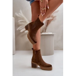 Botki Damskie Na Słupku Z Eko Zamszu Ocieplane Ciemnobrązowe Nevitas
