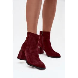 Botki Damskie Z Naturalnego Zamszu Na Słupku Ocieplane D&A CR52-718 Bordowe
