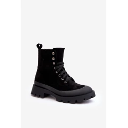 Botki Trapery Damskie Sznurowane Czarne Gordts