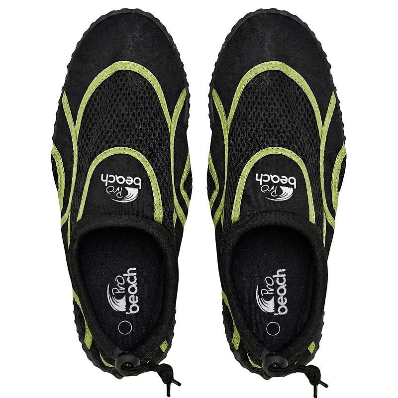 BOTY MAN WATER SHOES BLACK/GREEN R.46 jsou praktickým řešením pro dovolenou a aktivní trávení volného času. Chrání nohy před ostrými kameny, mušlemi a kluzkými dlaždicemi v bazénu. Díky nastavitelnému stahovacímu pásu dobře drží na noze a poskytují stabilitu i při pohybu ve vodě.